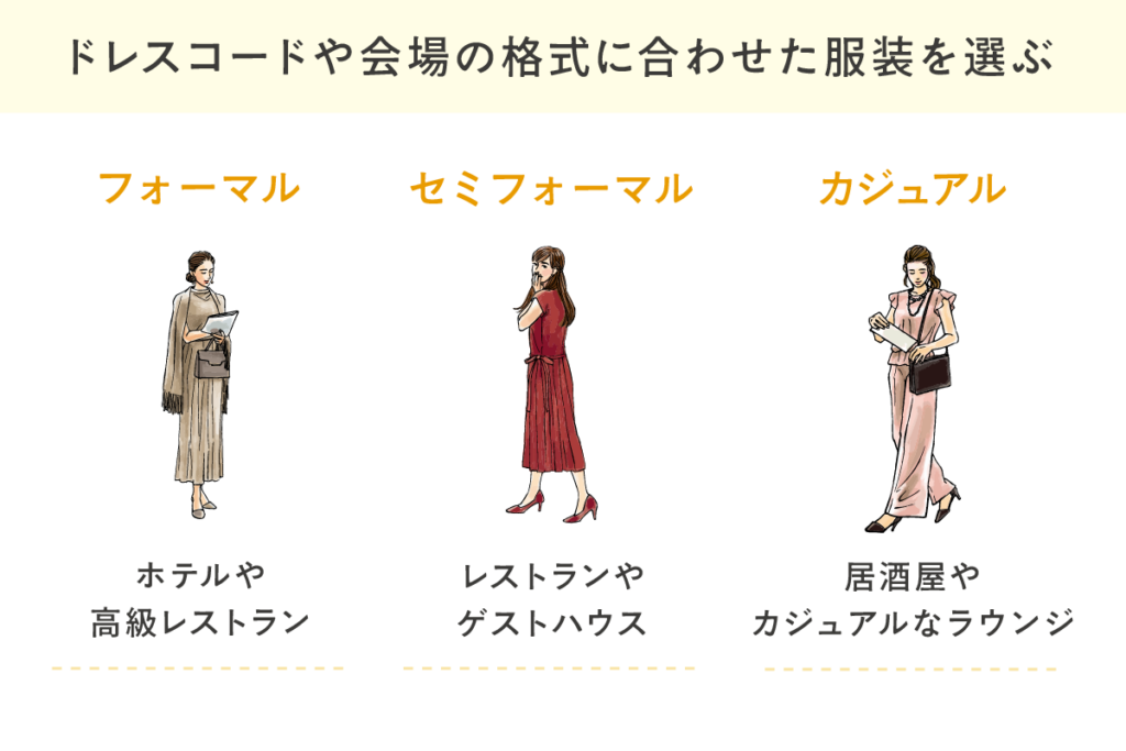 ドレスコードや会場の格式に合わせた服装を選ぶ