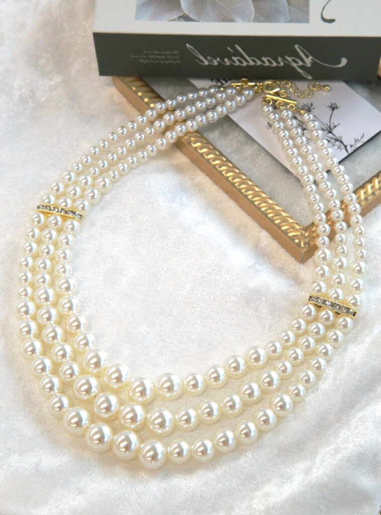 パールのネックレスも8㎜玉以上がおすすめです。存在感を感じるアクセサリーを選びましょう。