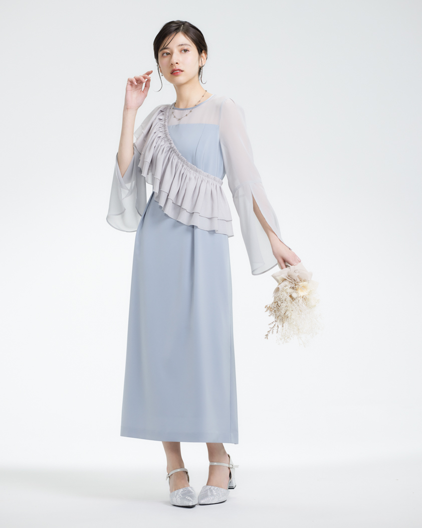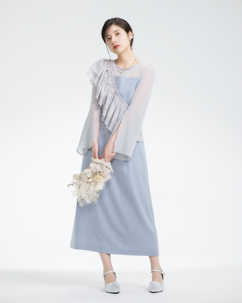 存在感たっぷりの立体チュールブラウスが目を惹くドレス。