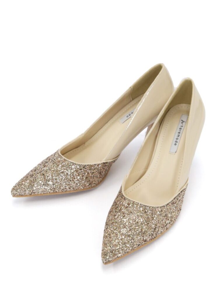華やかなグリッターが印象的な、ポインテッドハイヒールです。上品なデザインで赤いドレスにもマッチし、フェミニンな足元を演出します。コーディネートを格上げしてくれる、特別な日を彩る一足です。