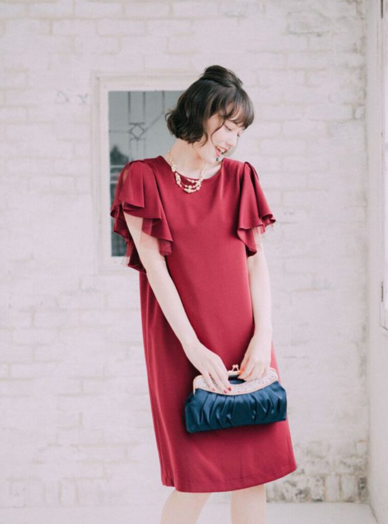 赤いドレスをおしゃれに着こなす秘訣は、小物で引き算をすることです。ドレスの色が強いぶん小物は控えめに選び、上品にまとめるように意識しましょう。