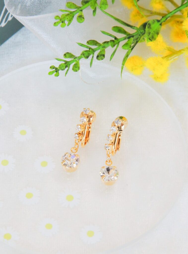 動くたびにきらきらと光るストーンと、カットガラスが美しいイヤリングです。シンプルながら上品なデザインで、コーディネートのアクセントとして取り入れると華やかさがアップします。結婚式や二次会など、さまざまなシーンで活躍するアイテムです。