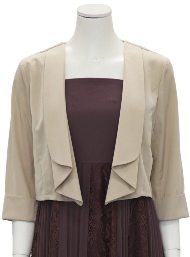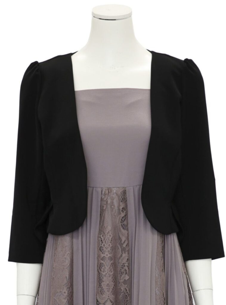 ボレロやストールなどの羽織りを合わせると、一気に洗練された印象に仕上がります。