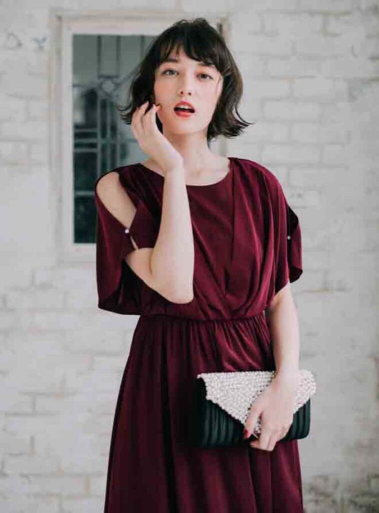 赤いドレスを選ぶ場合は、ボルドーやワインレッドなど、落ち着いたトーンを選ぶのがおすすめです。派手すぎない控えめな赤のドレスなら華やかさと上品さを両立でき、結婚式の雰囲気にも自然になじみます。