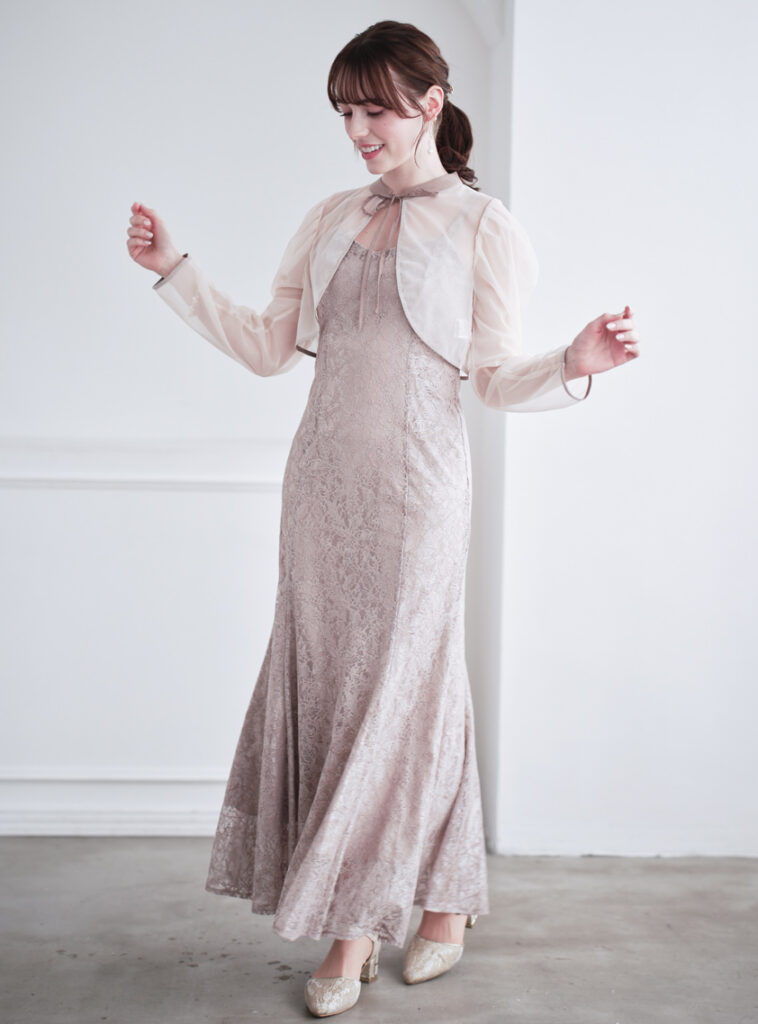 肩や背中が大きく開いているデザインのドレスを選ぶ場合は、ボレロやストールなどの羽織ものを合わせて肌の露出を調整しましょう。