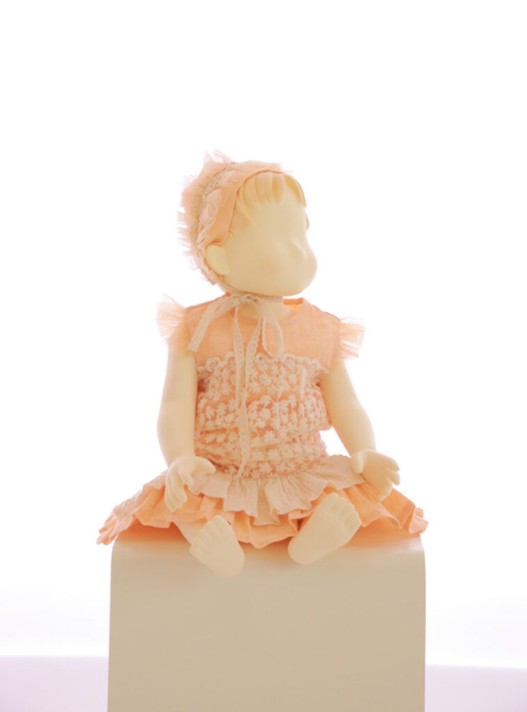 まるでお花畑のような刺繍が印象的なベビードレスです。袖口に施されたチュール部分は、フェミニンさを引き立てます。ペールトーンのオレンジカラーは、春夏らしい爽やかな雰囲気にぴったりです。付属のヘッドドレスを合わせて、トータルコーデを楽しめます。