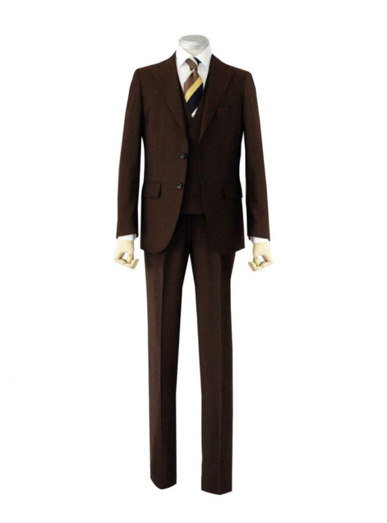 ジャケット・ベスト・パンツの3点がセットになったスーツです。イタリア製の生地を使用し、伸縮性と肌触りがよいのが特徴です。深みのあるチャコールカラーは、自然豊かなガーデンウェディングの景色にも調和します。季節に合う色の小物を合わせて、自分らしいコーデを楽しめます。