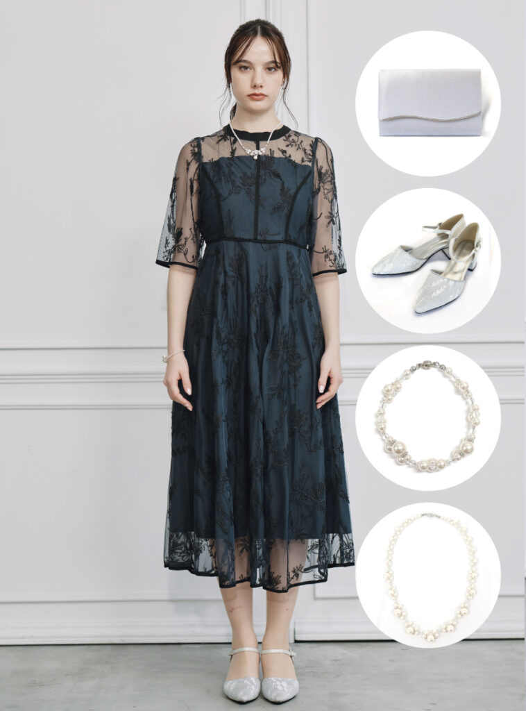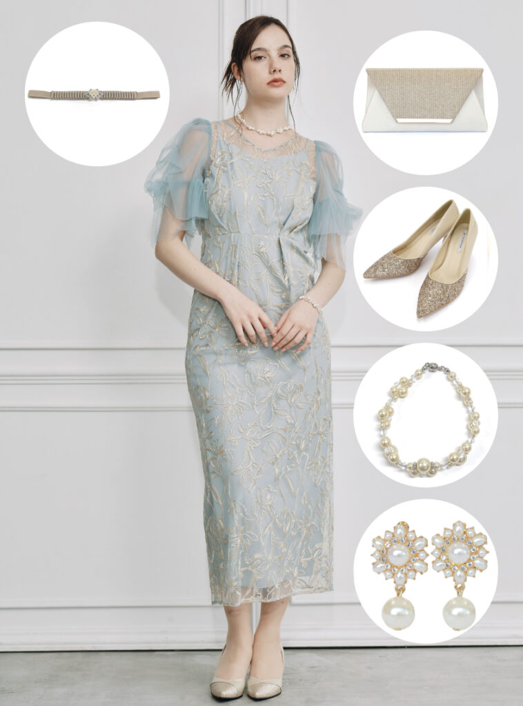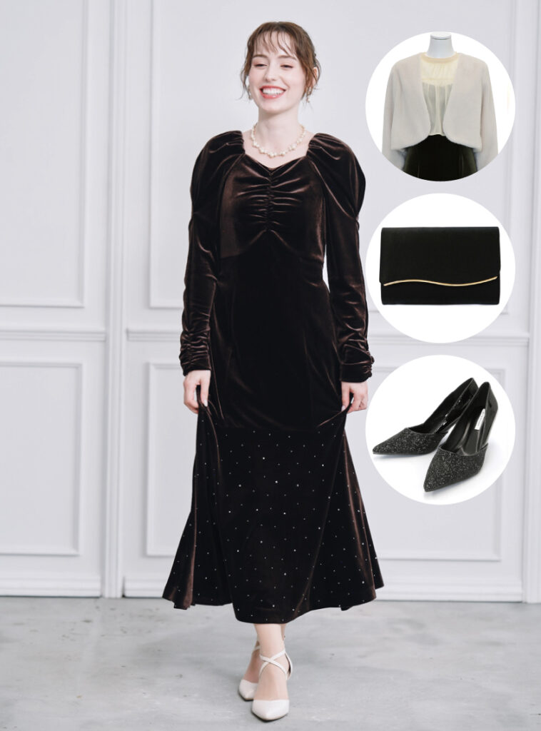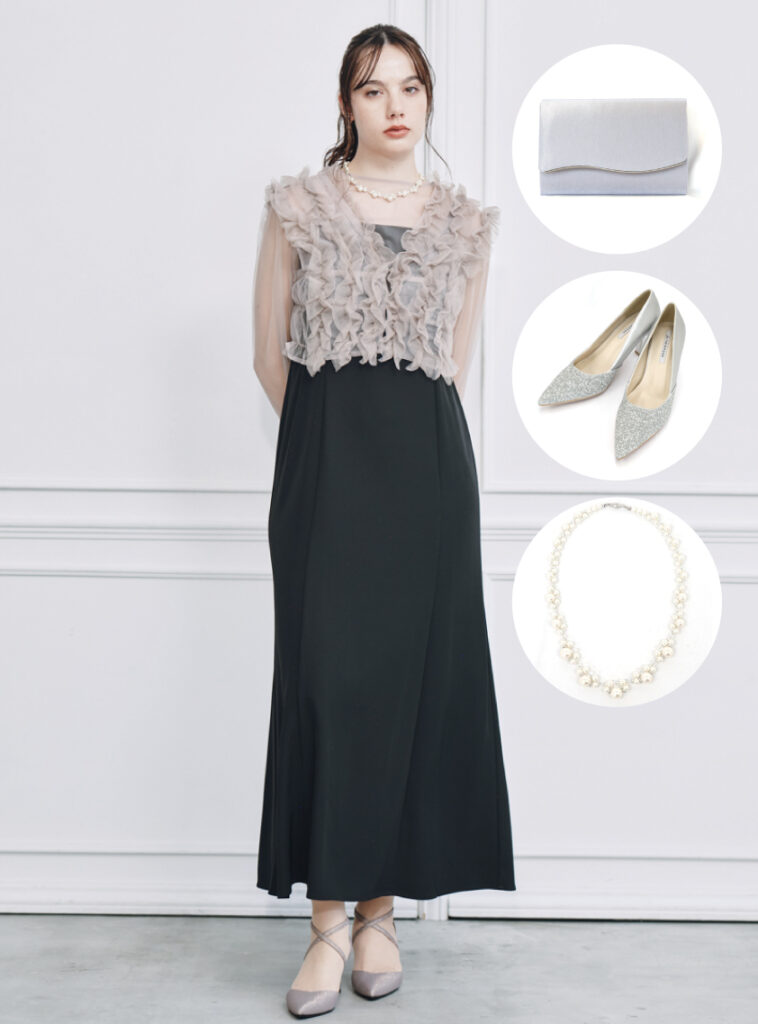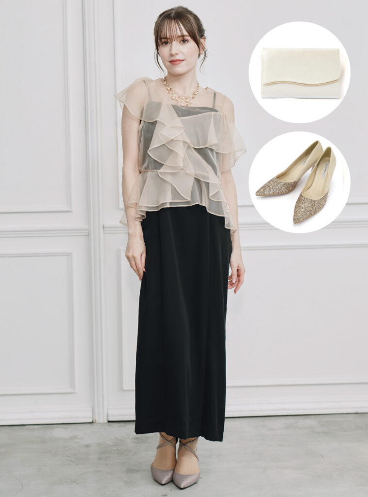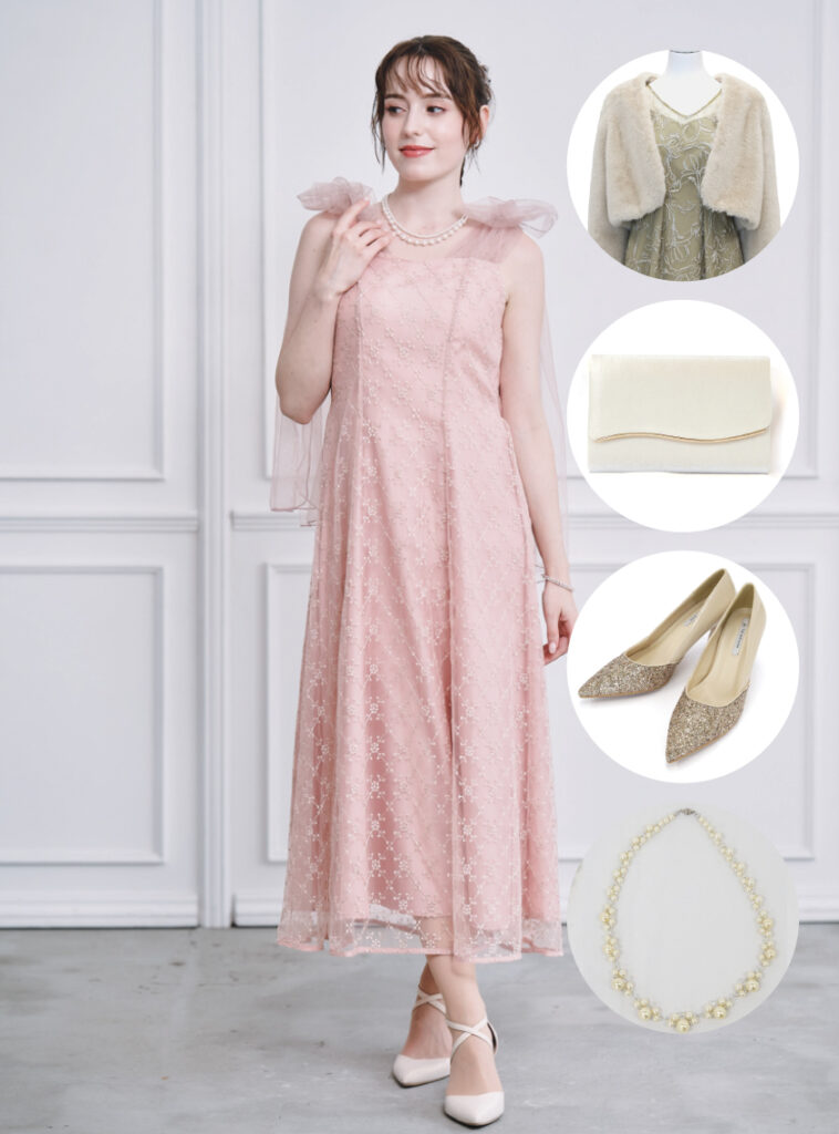 ドレス+バッグ+アクセサリー1点~2点もしくは羽織(ショール・ボレロなど)の計4点セット