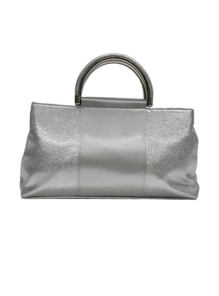 シックなデザインのフェイクレザーバッグです。シルバーの色味が程よく華やかでコーディネートのアクセントになるでしょう。手提げとしてだけでなくショルダーでも使えるので、子どもを抱っこするママにもピッタリです。
