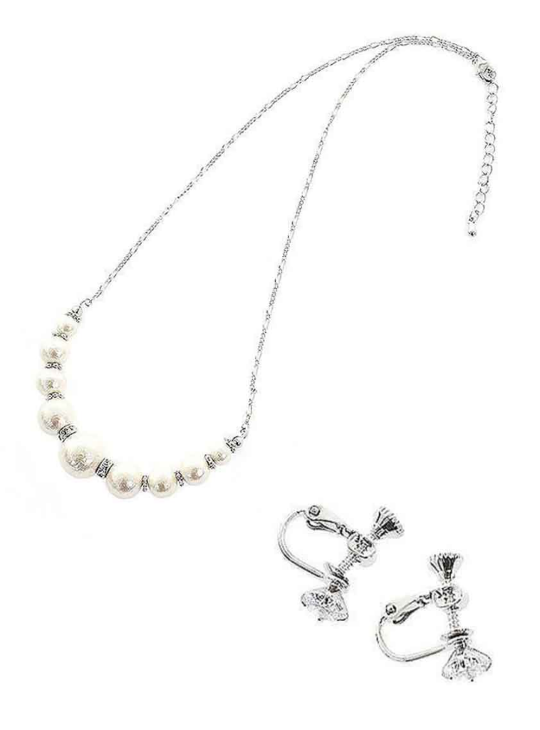 パールのネックレスとダイヤのイヤリングのセットです。どちらもシンプルなデザインでフォーマルな場にピッタリです。コットンパールは軽いため、お宮参りの日に気軽に着用できます。