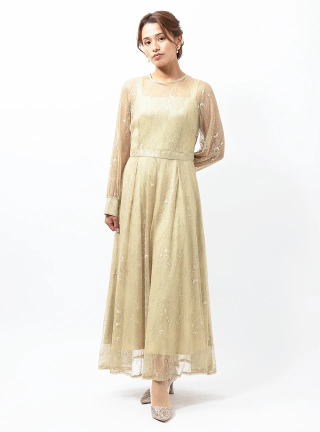 - エレガントな雰囲気を演出するロング丈のレースドレス