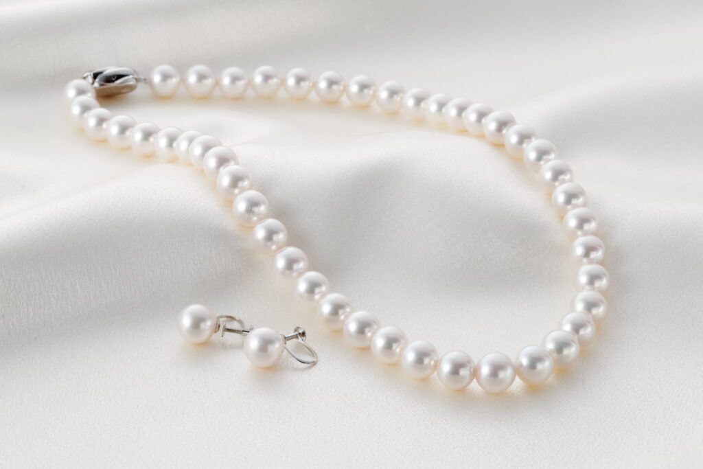 華やかなディナークルーズの装いには、パールやビジューをあしらった光沢感のあるアクセサリーを選ぶのがおすすめです。光を反射するアクセサリーを選ぶことで、落ち着いた照明の中でも、顔まわりをパッと明るく見せられます。