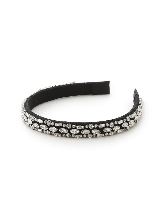 さまざまな形のビジューが施された、煌びやかなカチューシャです。ブラックとグレーの2色展開で、ドレスのデザインに合わせて選べます。ヘアスタイルを問わず着用できるため、ショートやボブスタイルの方にもおすすめです。