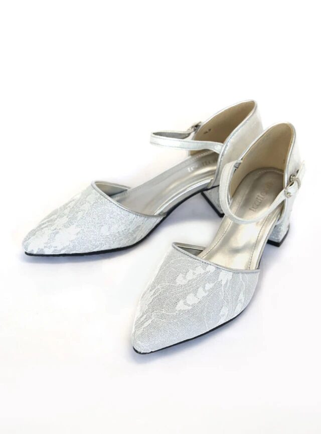花柄のレースデザインが上品なチャンキーヒールのシューズです。ストラップ付きで足を固定できるため、歩行中の靴脱げを防止できます。シルバー・ゴールド・ブラックの3色展開で、パーティードレスに合わせて好みのデザインを選べます。
