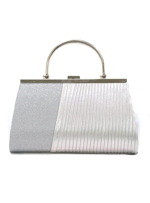 グリッターとラメの輝きが美しいハンドバッグです。プリーツの立体的なデザインは、エレガントな雰囲気を引き立てます。がま口で開閉しやすく、荷物をスムーズに取り出し可能です。