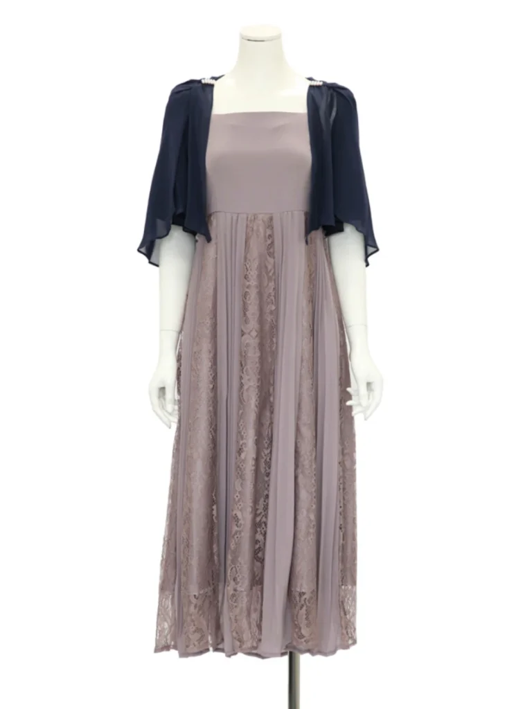 | モーヴピンク | ・青みがかった落ち着きのある色味 ・成熟した魅力を演出 | ・Vラインレース ・フォーマルシルエット |
