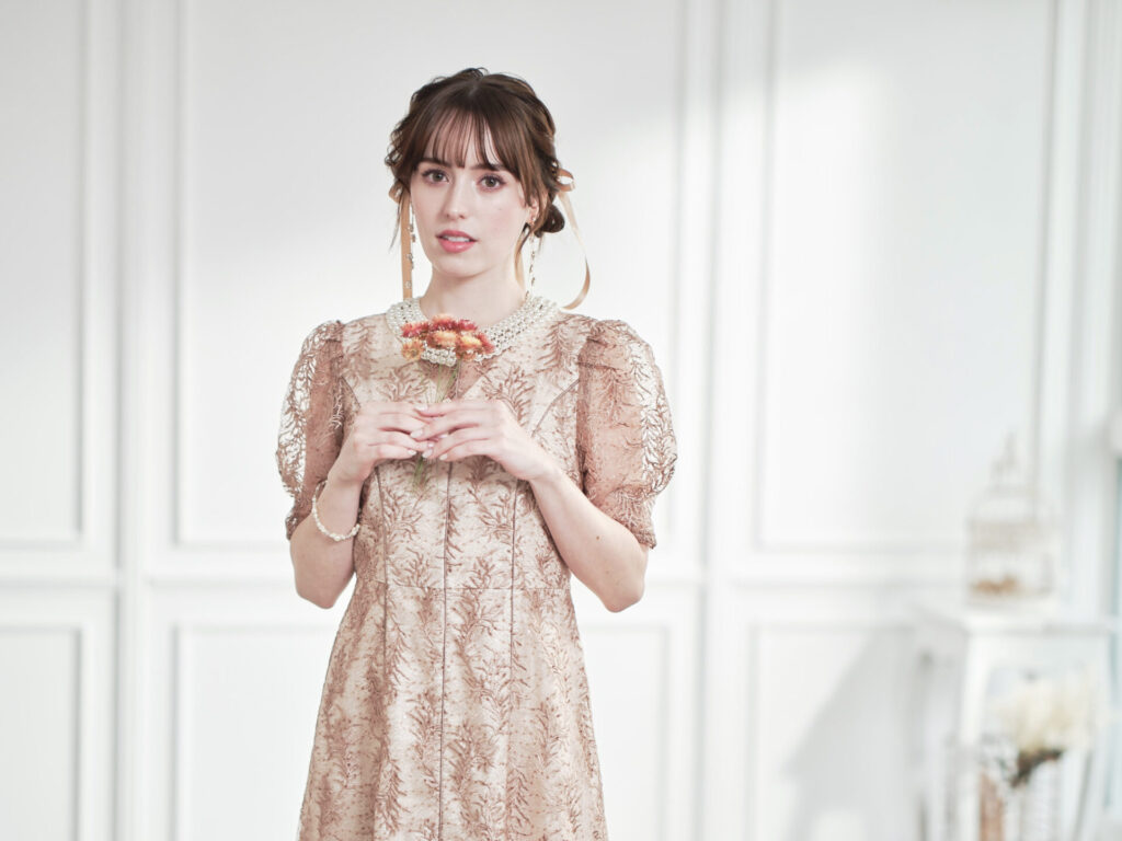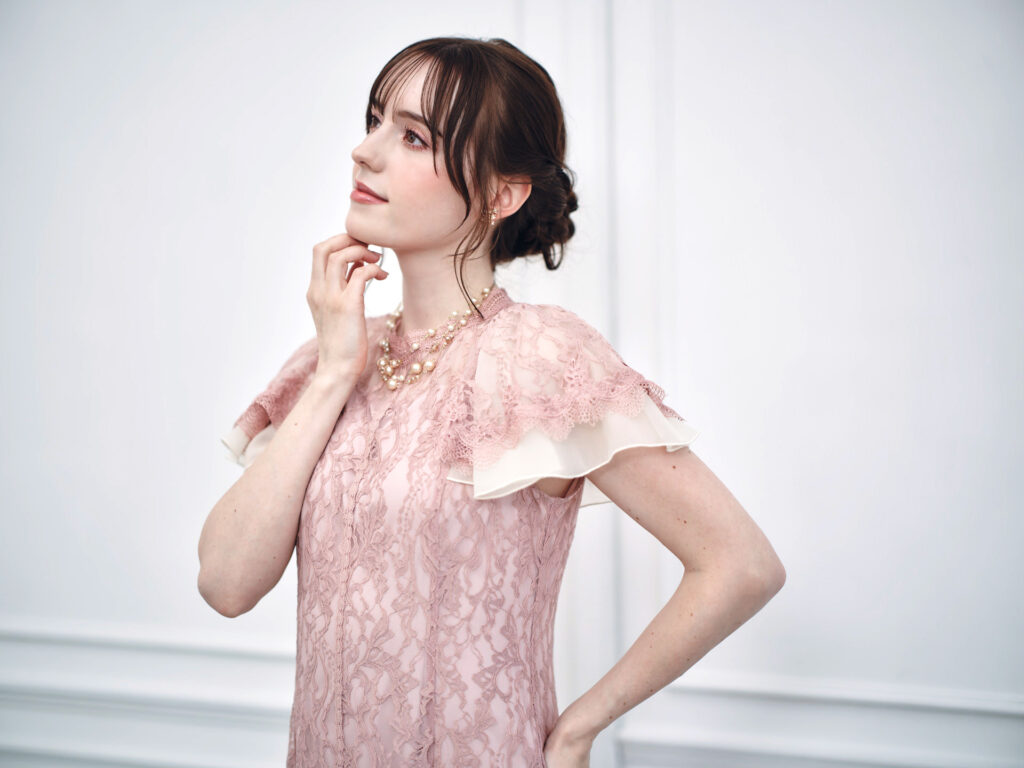 | ベビーピンク | ・清楚でやわらかな印象 ・日本人の肌になじみやすい | ・フレアスカート ・レース素材 |