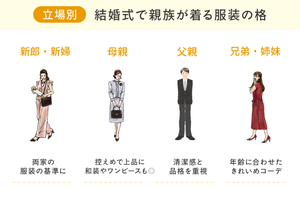それぞれの年齢や場の雰囲気に合った服装を選ぶことで、全体の調和が取れた印象を作れます。