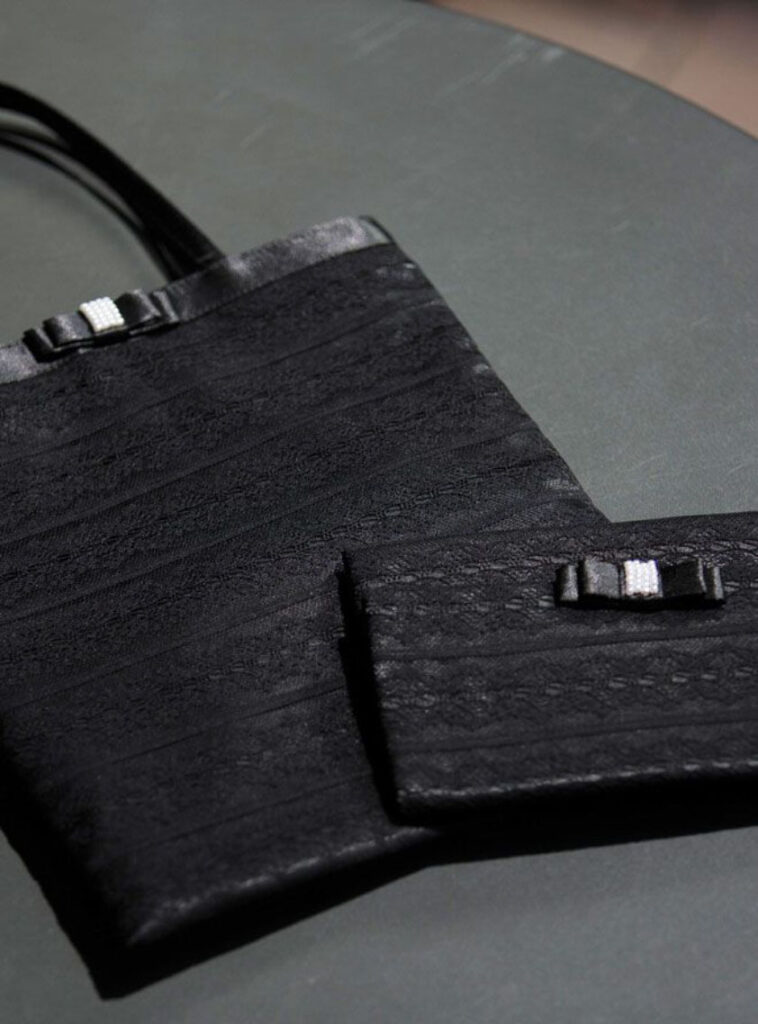 上品なレース素材のサブバッグと袱紗(ふくさ)がセットになった便利なアイテム。フォーマルシーンにふさわしい落ち着いたデザインで、顔合わせや結婚式などの場でも違和感なく使用できます。書類や小物をまとめたいときにも重宝し、一つ持っておくと安心です。