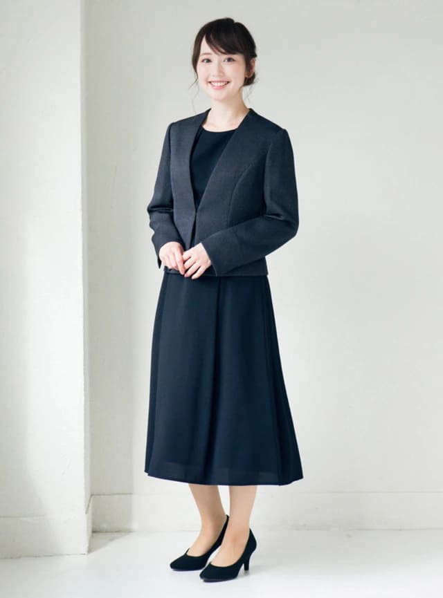 ダークカラーのスーツやワンピースが定番