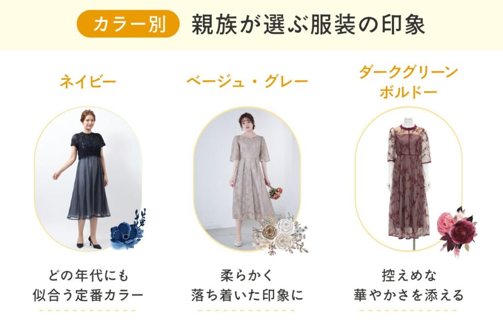 なお、あらかじめ新郎新婦や両家親族と相談して、服装の色味を決めるケースもあります。