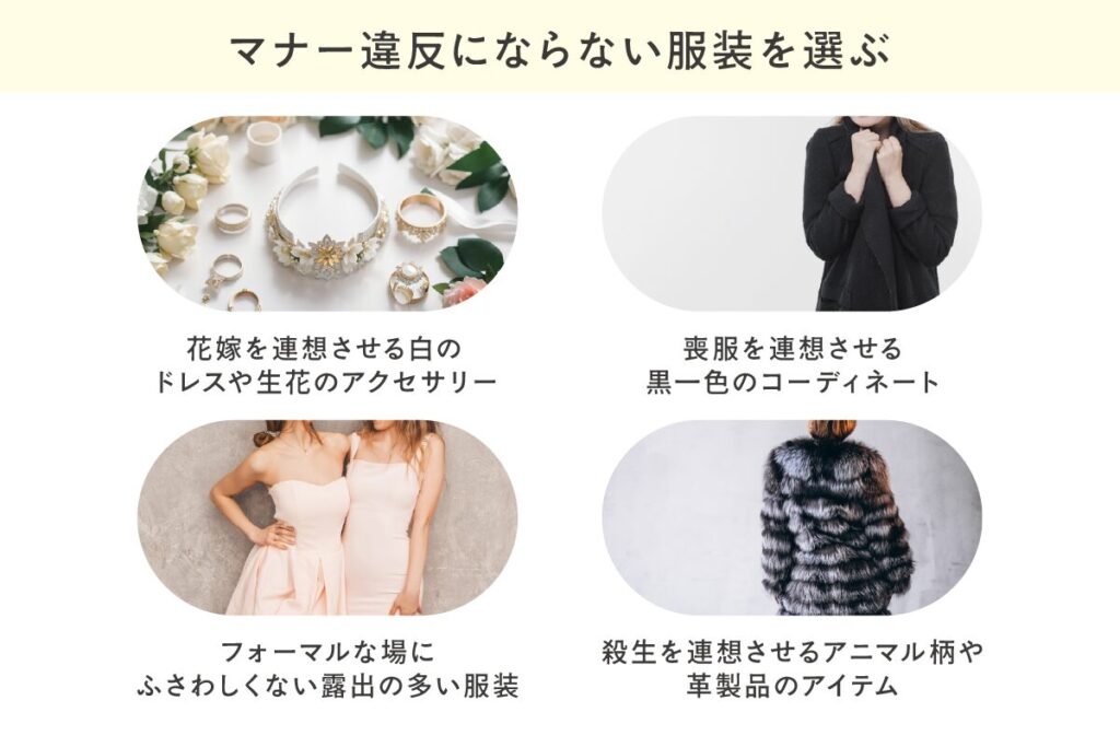 - マナー違反にならない服装を選ぶ