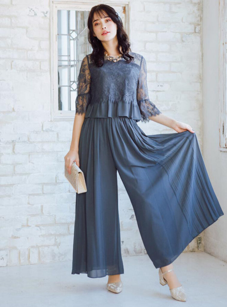 ドレスに新鮮さを加えたい場合は、パンツドレスがおすすめです。スタイリッシュでこなれた雰囲気を演出できます。