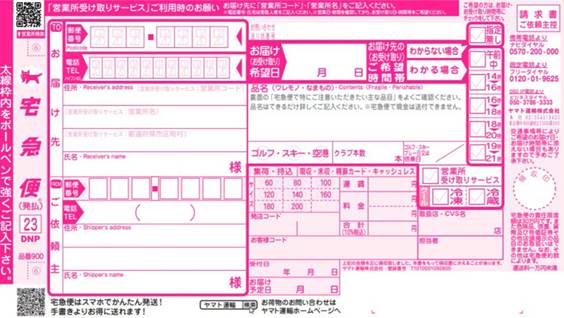 - 「元払い伝票」が同封されている場合