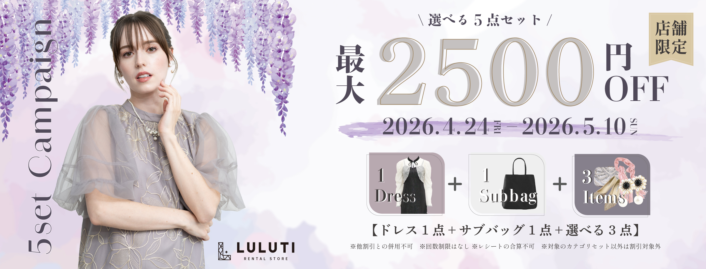 LULUTIでは、結婚式・パーティにぴったりなアイテムをトータルで揃えられる「選べる5点セットキャンペーン」を開催いたします。